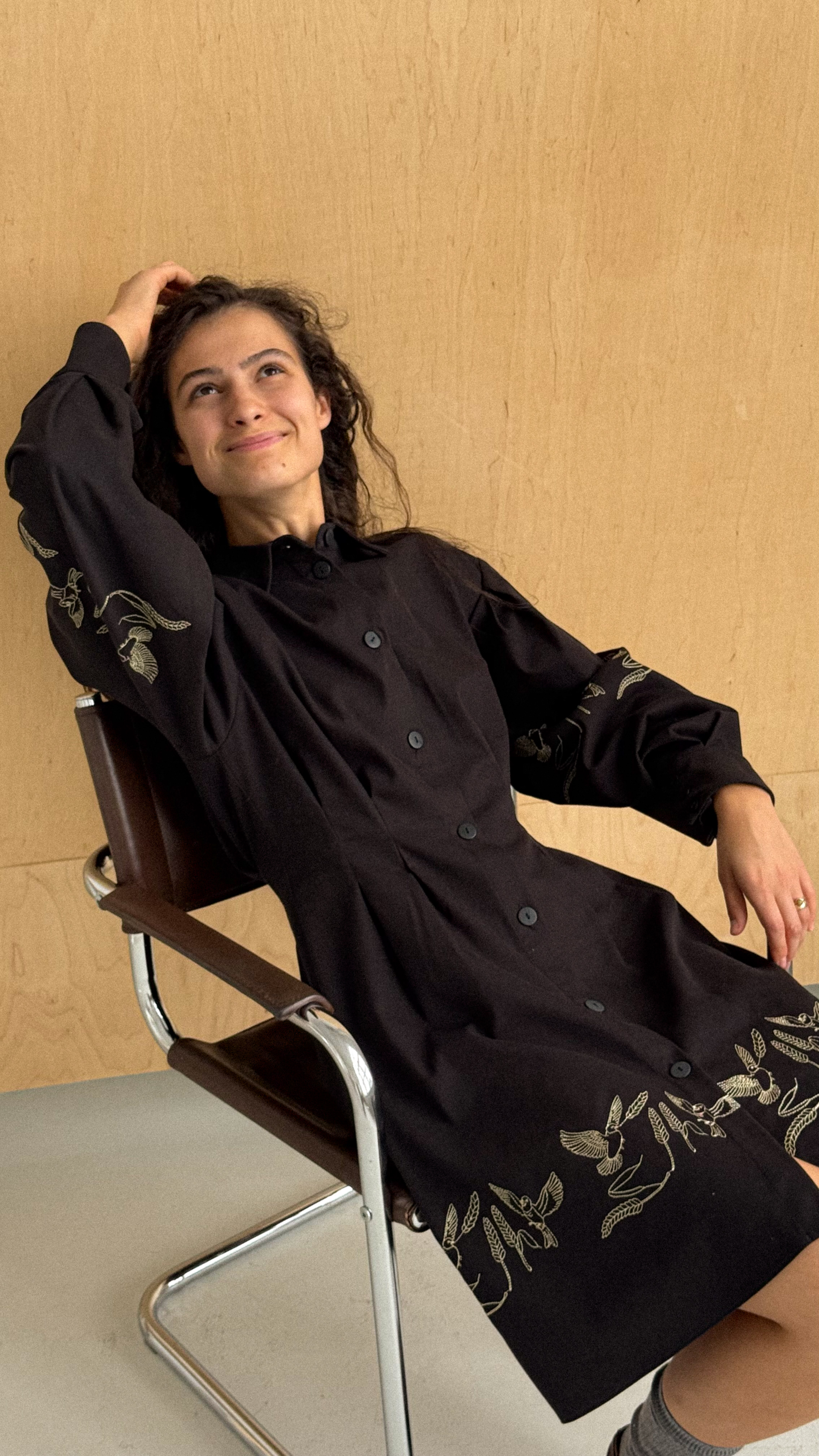 Особенное платье Родина из новой коллекции, которое способно окунуть Вас в детство. Это платье из лимитированной коллекции, выполнено из нежного хлопкового джинса, что подарит комфорт и красоту на целый день, Изящное, приталенное платье с рукавами, вышитыми "родным мотивом"