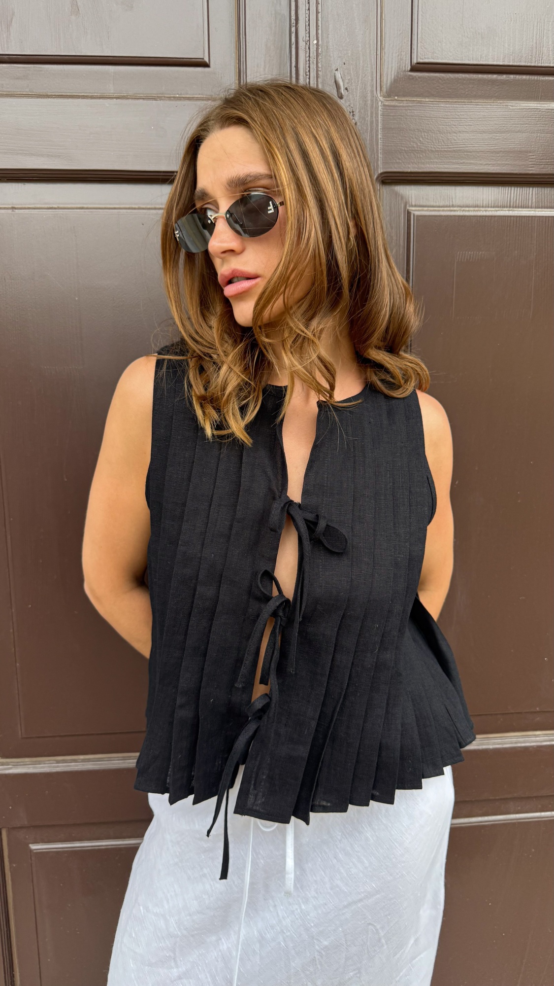 Ощутите легкость и красоту с новой льняной блузкой PAULA . Блузка отлично сочетается с юбками, брюками и джинсами, позволяя создавать разнообразные образы для любого случая. Кокетливые завязки на груди: Подчеркивают вашу женственность и позволяют регулировать глубину выреза