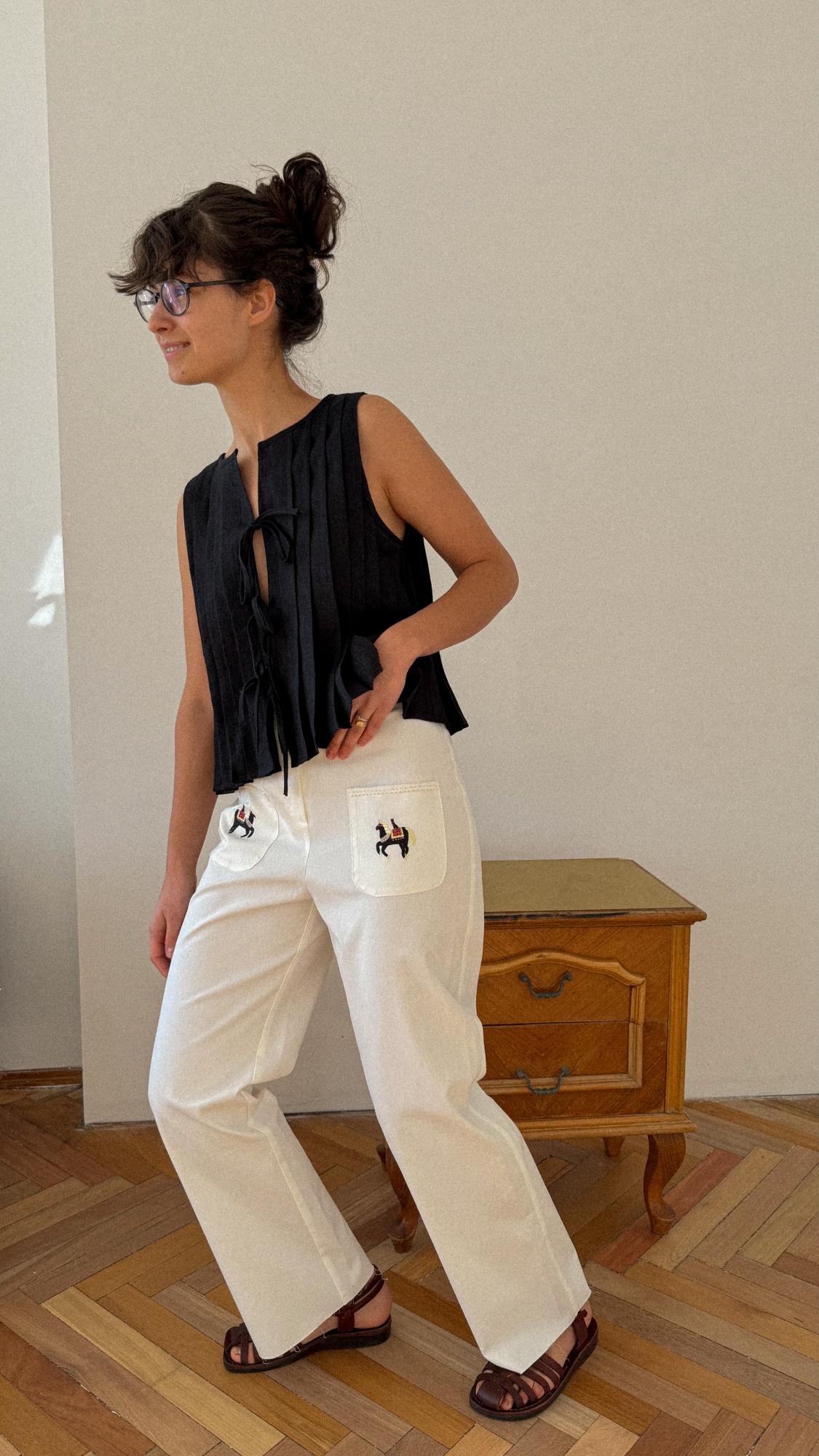 Джинсы с высокой посадкой и вышивкой на карманах, длину можно самостоятельно легко обрезать на любой рост